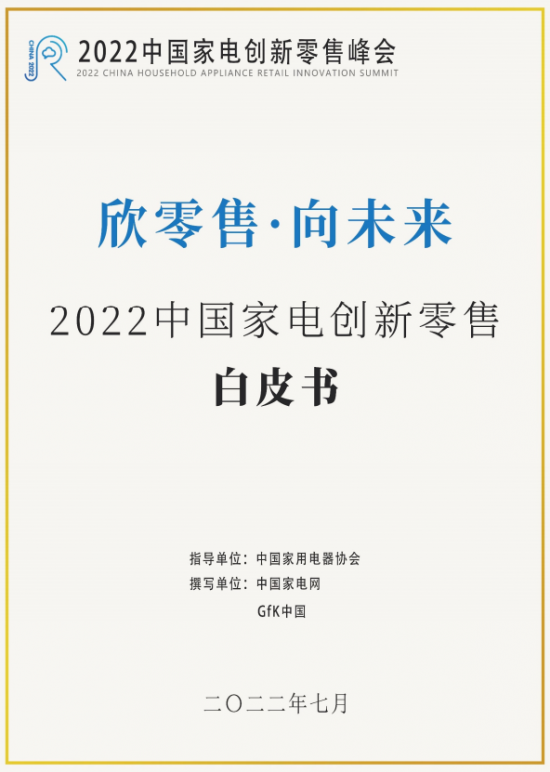近日,由中國家用電器協會指導、中國家電網和GfK中國聯合撰寫的《欣零售·向未來——2022年中國家電創新零售白皮書》(以下簡稱《白皮書》)正式發布。《白皮書》全面梳理了我國創新零售發展現狀,幫助行業總覽市場發展趨勢、洞察新興消費者需求、把握行業突破口,為企業找準戰略發展方向、加快推進生態創新、率先實現數字化轉型提供深度參考。