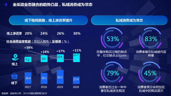 《白皮書》指出,隨著消費者觸點的碎片化與決策無序化趨勢,這倒逼家電企業必須圍繞消費需求與決策鏈路構建多元化場景,提升多端運營能力。對于家電企業而言,隨著互聯網紅利的消失,公域流量價格水漲船高,要想降低獲客成本、提高用戶生命周期價值,構建自己的私域流量變得迫在眉睫。于是,加碼智慧零售戰略布局、加深線上線下一體化協同,逐漸成為家電企業打造第二增長曲線的共識。同時,越來越多家電企業將關注的焦點聚焦在公域流量和私域流量的打通上,真正從公域和私域分治的發展階段,進入到公域和私域融合、協同和共進的發展新階段。