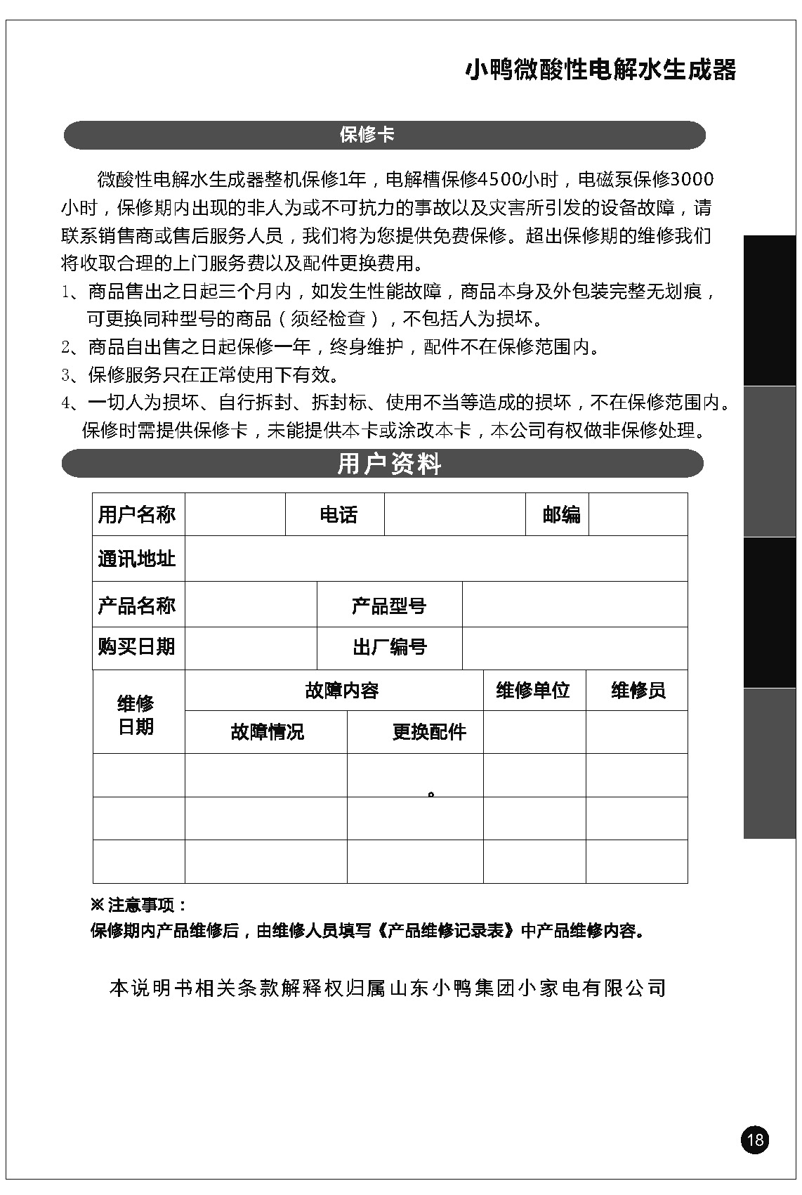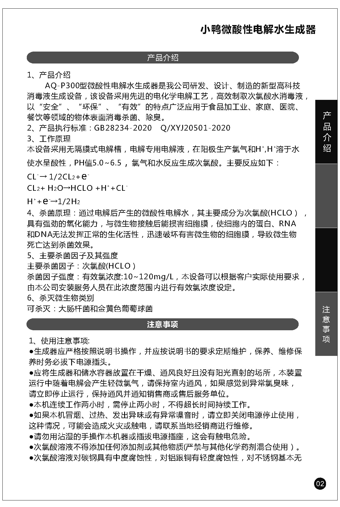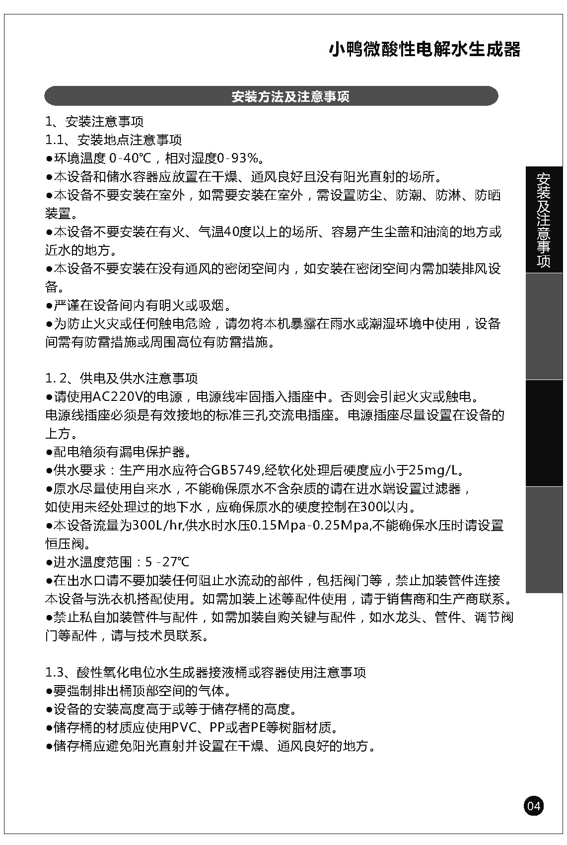 小鴨微酸性電解水生成器使用說明書